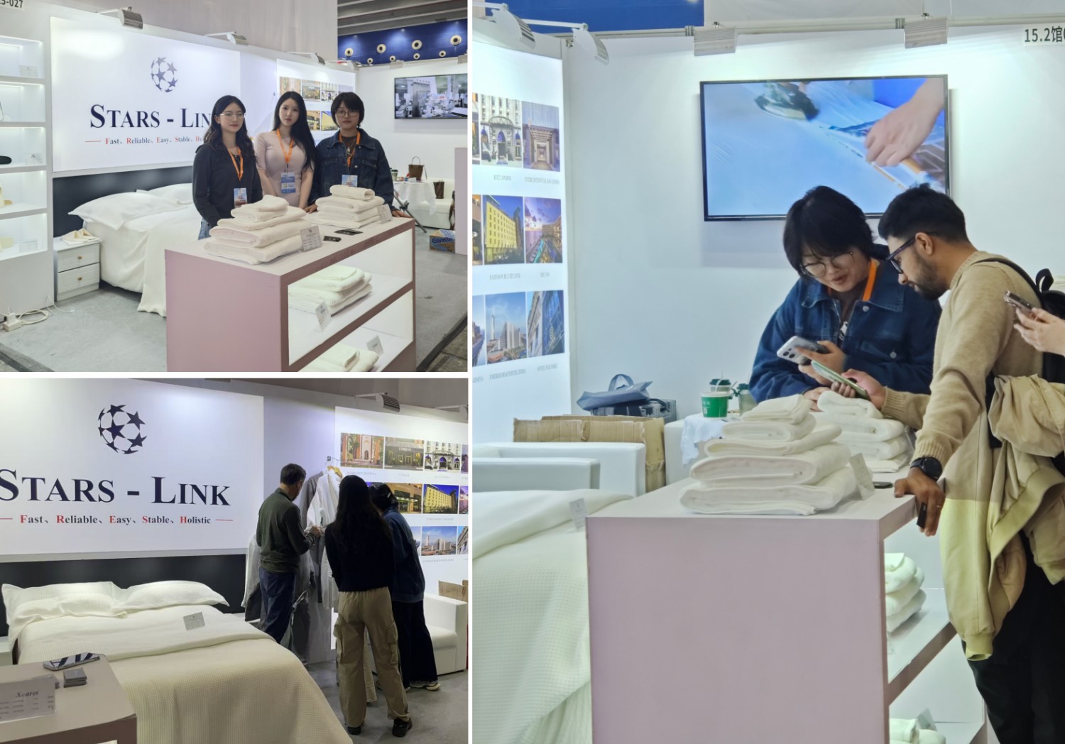 At this exhibition, we showcased our newly designed hotel linens and received positive feedback from numerous professional buyers. Especially our unique waffle covers, Model Material for InterContinental hotel and 100% biodegradable slipper for Mandarin Oriental , provide customers with new ideas and solutions to upgrade and expand their market.
